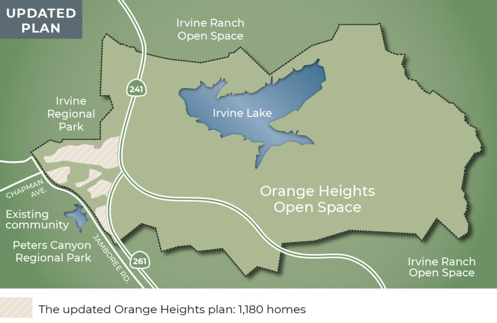 The story of Orange Heights stretches back several decades, with a steadily improving vision for the future. In its 1989 General Plan, the city of Orange approved up to 12,350 homes across an approximately 7,100-acre site. But in 2016, the city approved Irvine Company’s proposal to reduce that number to just 1,180 homes — while permanently preserving over 90% (6,600 acres) of the property as public open space. Now, the plan is being refined even further with more landscaping, parks and trails.